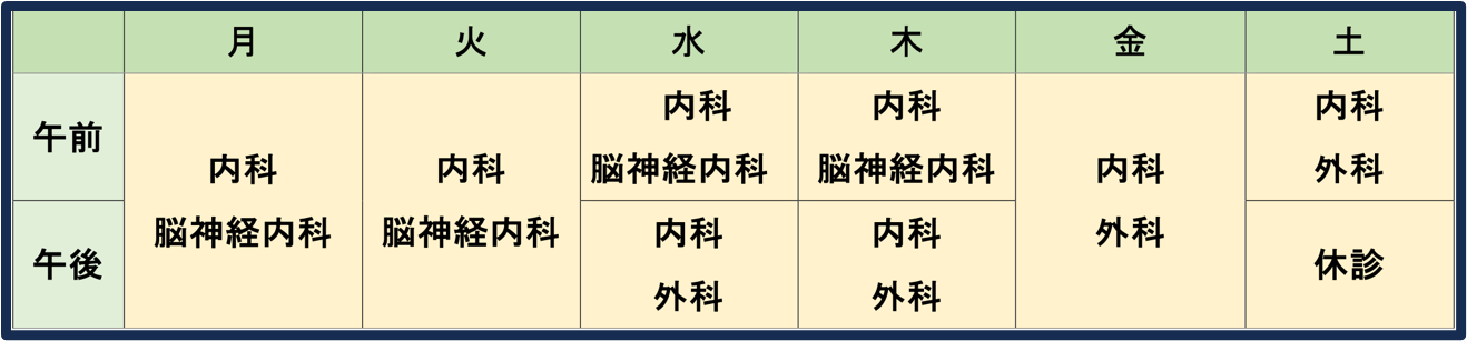 医師の勤務状況等により、翌月以降外来診療体制が変更となる可能性がございます。その際は、速やかにホームページや院内掲示にてご案内いたします。